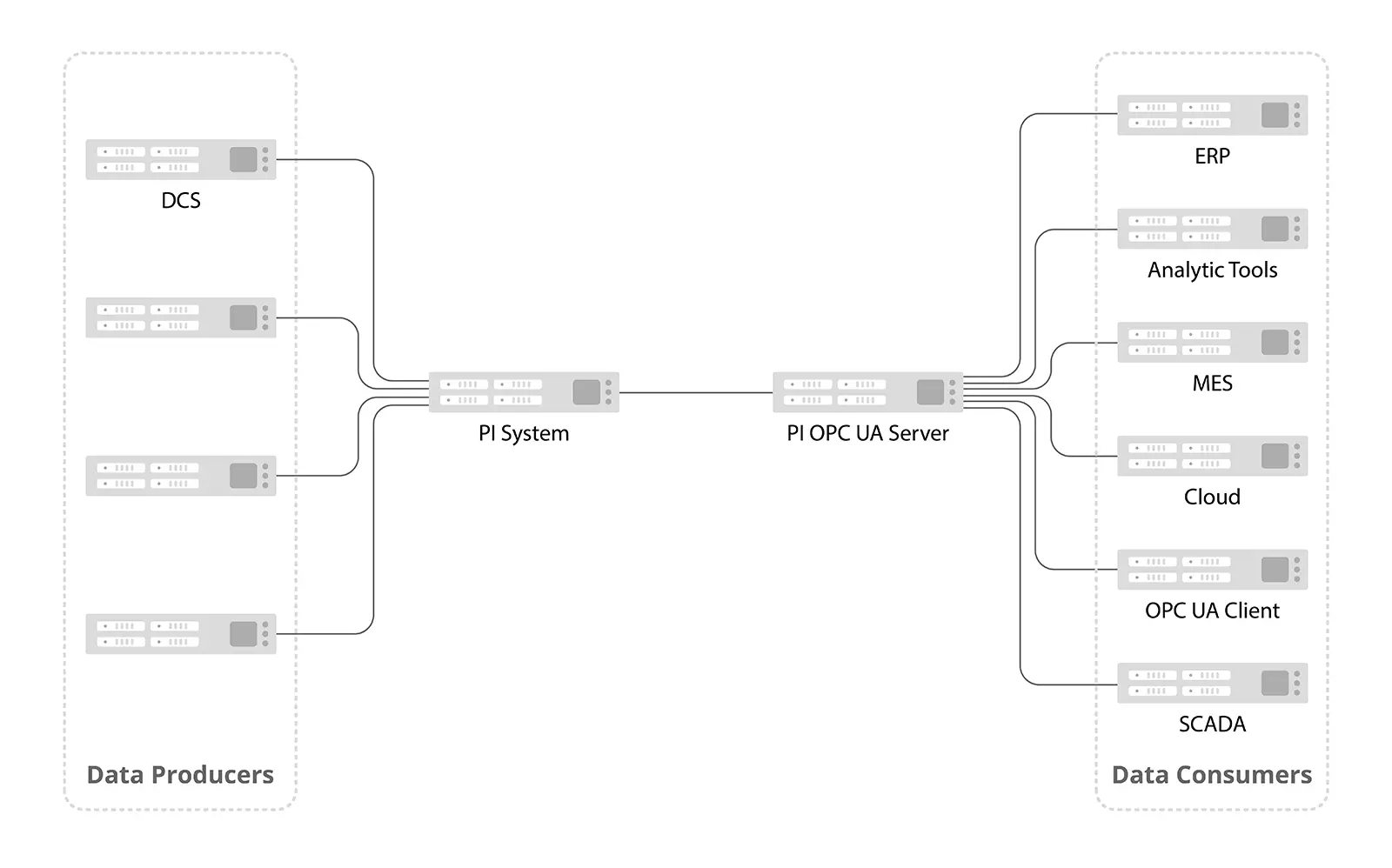 - Advanced Analytics & AI: Pipe cleaned, contextualized PI data directly into AI/ML platforms, Python scripts, or cloud analytics tools that natively speak OPC UA but lack AF SDK support.